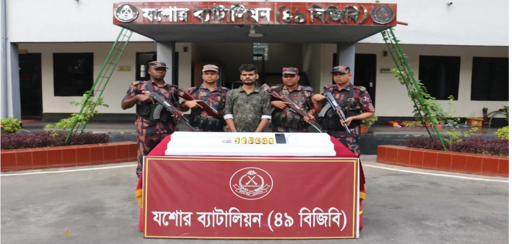 যশোর ব্যাটালিয়ন ৪৯ বিজিবি আবারো এক দিনের ব্যবধানে ৬ টি স্বর্ণের বারসহ একজনকে আটক করেছে